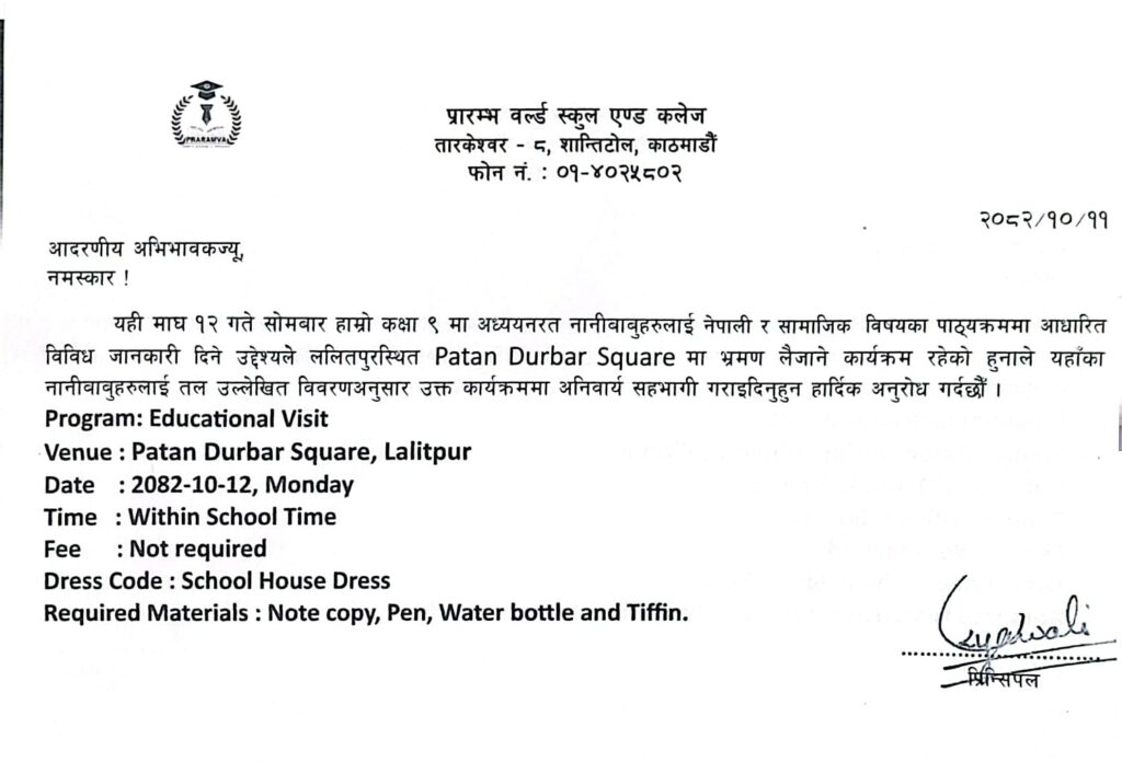 Educational Visit to Patan Durbar Square (Class 9)